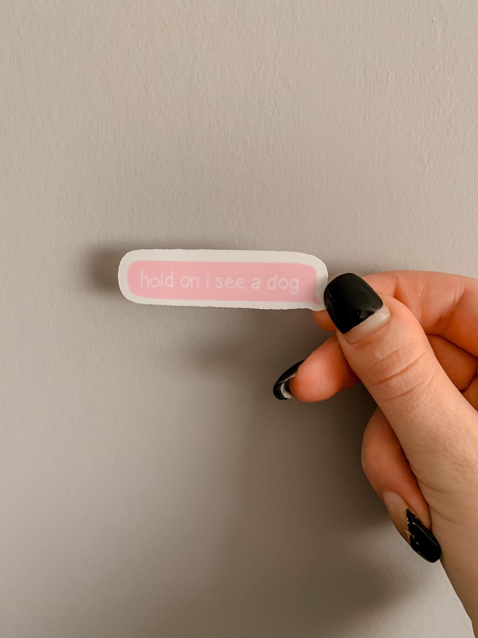 HOLD ON I SEE A DOG MESSAGE BUBBLE STICKER
