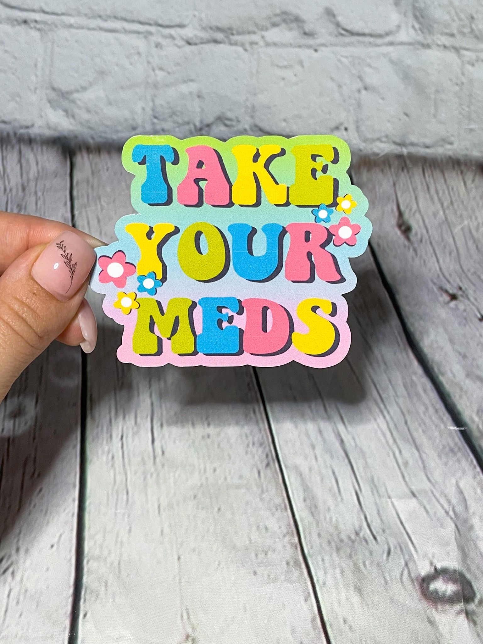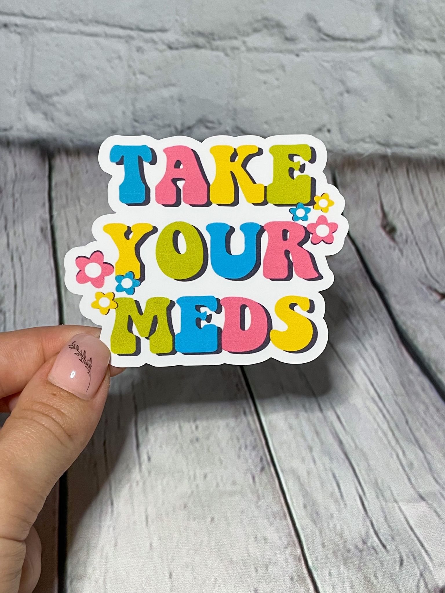 Spice up your laptop, water bottle, scrapbook, notebook and so much more with our Take Your Meds sticker✨