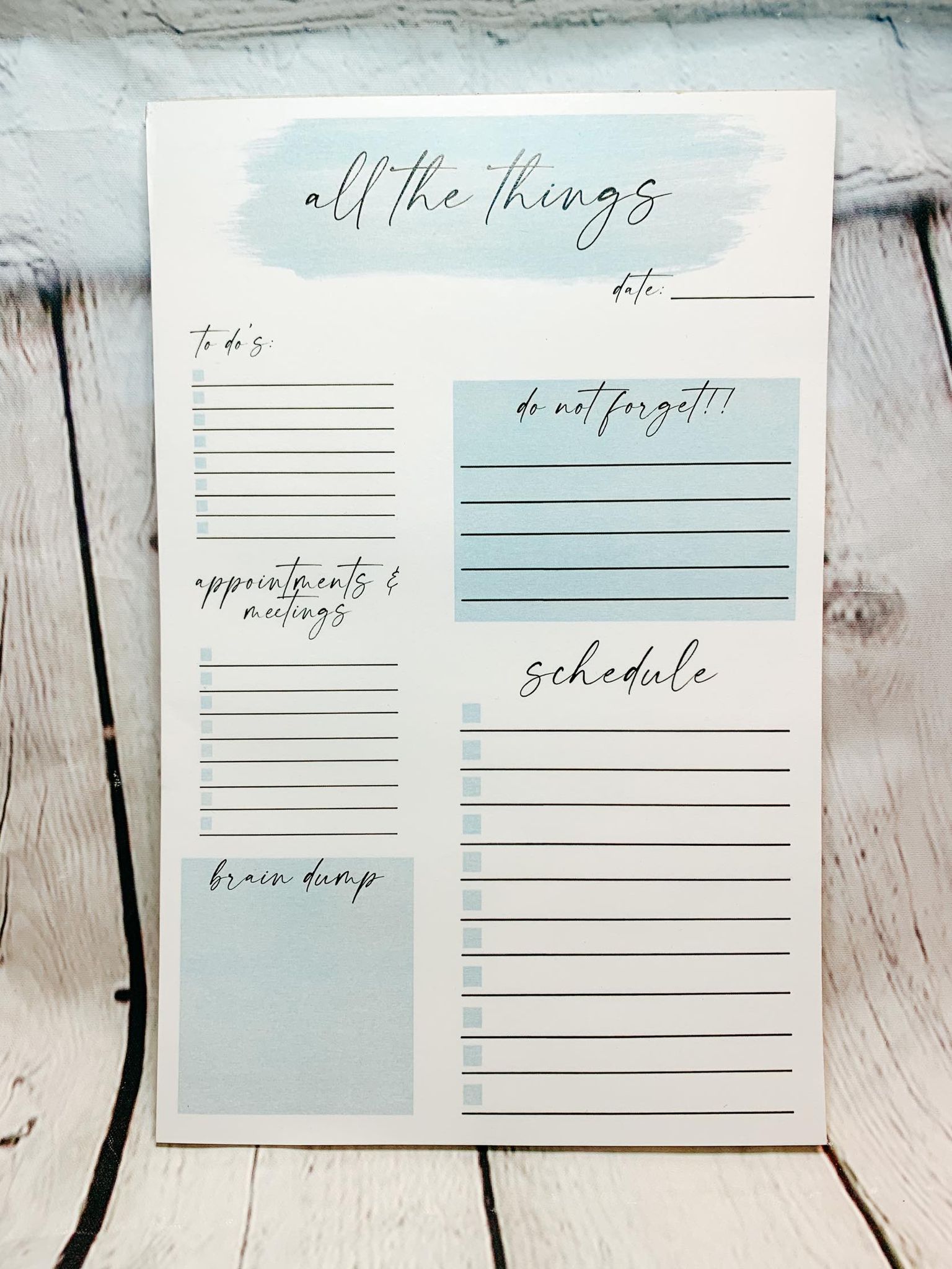 Each notepad comes with 50 pages and a chipboard sturdy backing. Notepads are 5.5" x 8.5".