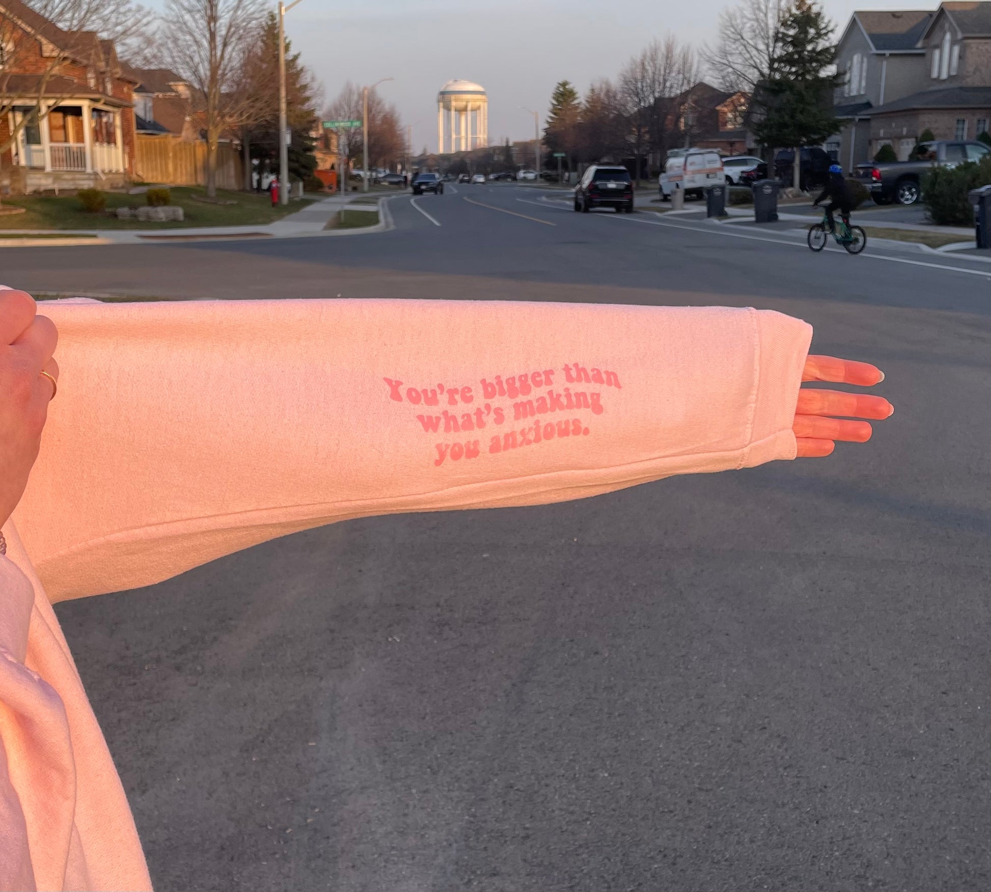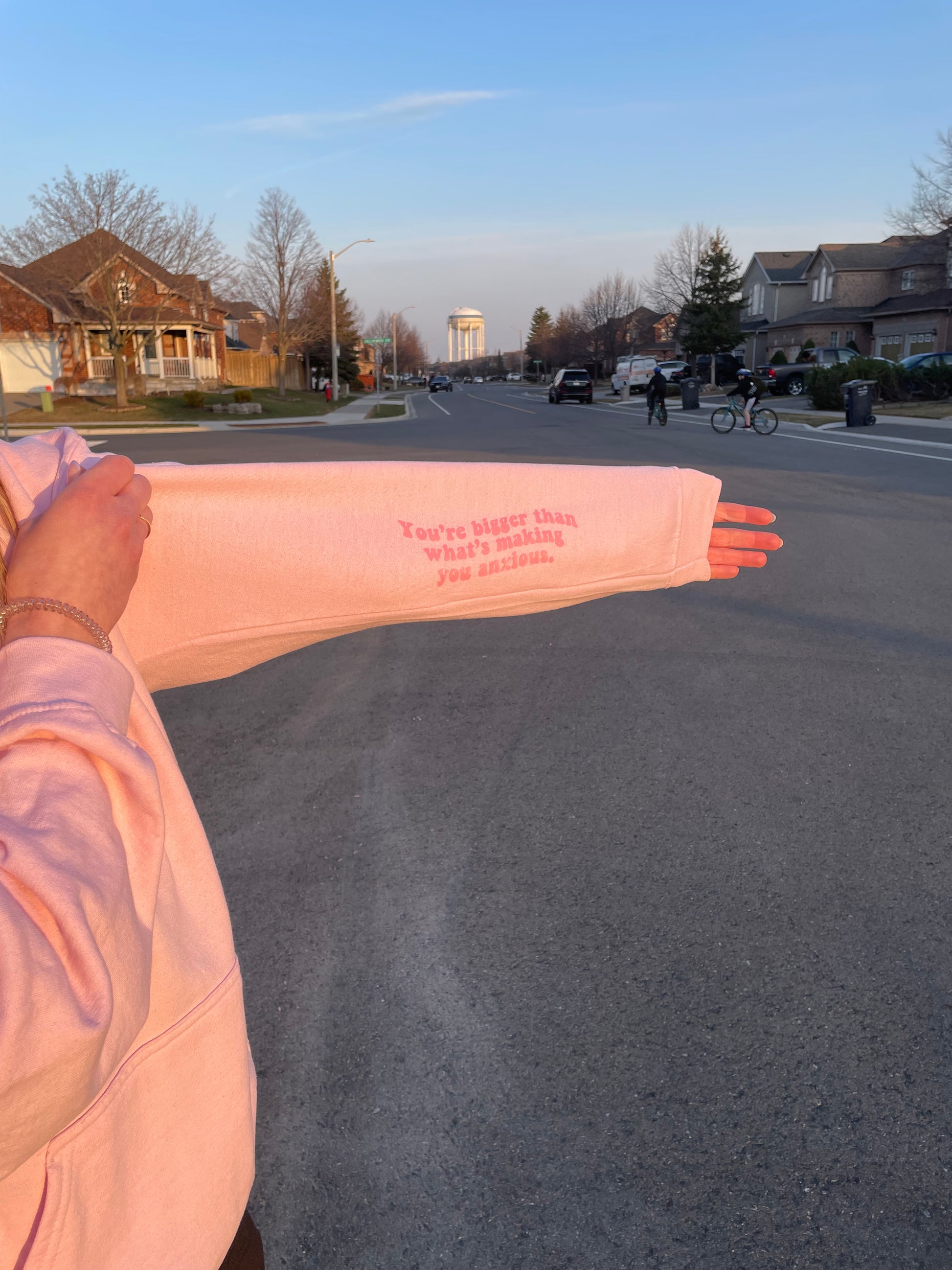 Embrace your ambitions and overcome your anxieties in this Bigger Than What's Making You Anxious Sweatshirt! Its relaxed fit and cozy 50/50 cotton-polyester blend will keep you feeling zen. The simple mental health message on the arm is an inspiring reminder that you are capable of achieving more than what concerns you. Unisex fit. Make a statement and overcome your anxieties!