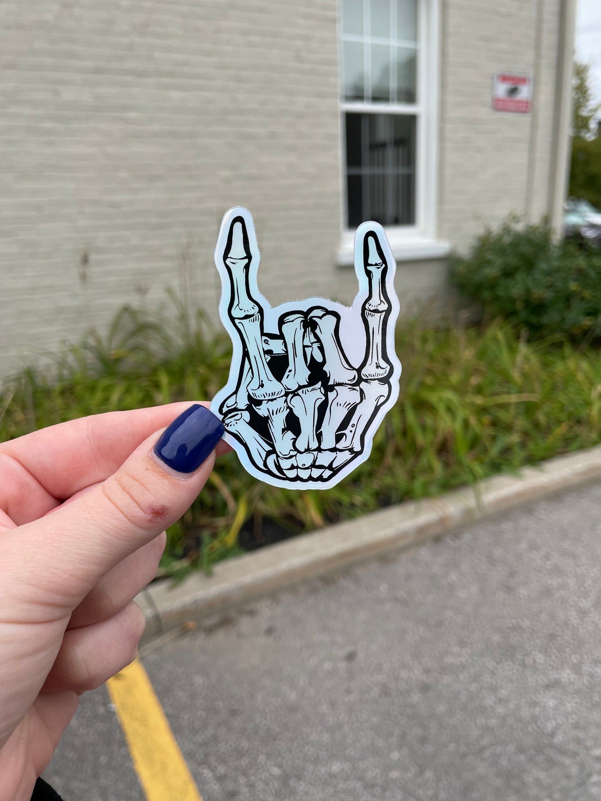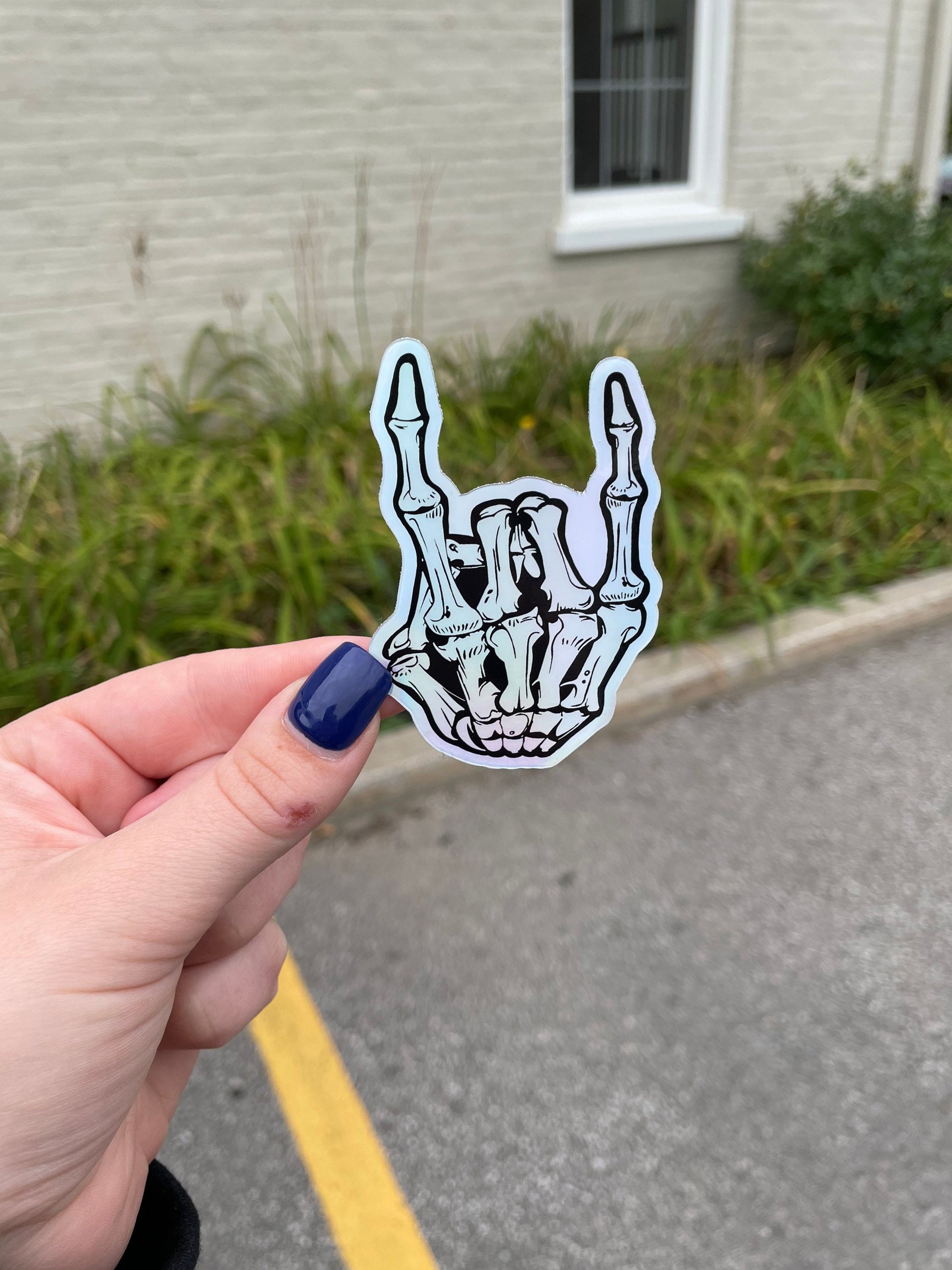 Spice up your laptop, notebook, phone, water bottle, and so much more with this awesome holographic skeleton hand sticker! The simplicity and style of it will be sure to look good no matter where you choose to put it!